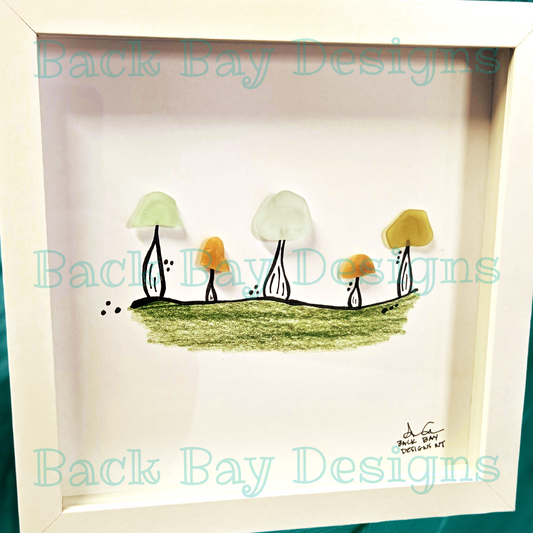 Mushrooms - Garden Original Sea Glass Art by BBD