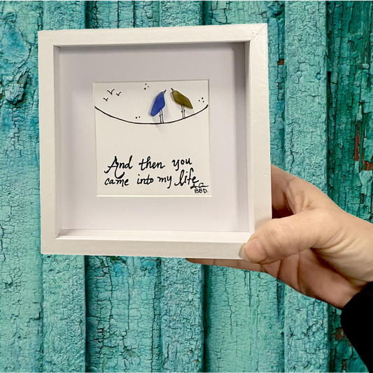 Came Into My Life Lovebirds on Wire MINI - Sea Glass Art - 6x6 Framed