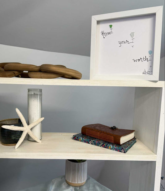 Know Your Worth Flowers - Sea Glass Art, Uplifting Gift, Garden Decor, 8x8 framed