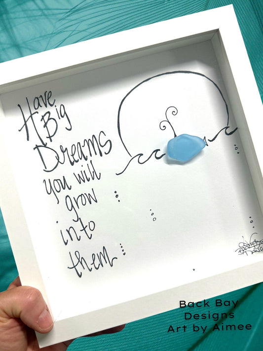 Big Dreams Whale - Sea Glass Art, Graduation Gift, Inspirational Nautical Decor