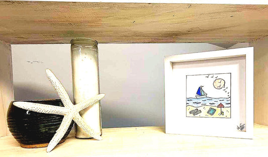 Sailboat Beach MINI - Sea Glass Art - 6x6 Framed