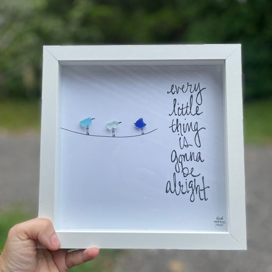 Dive into the collection that sparked it all! This framed mixed-media art blends sea glass, shells, and hand drawn designs for a truly unique look—no two pieces are alike, and colors will vary.Â