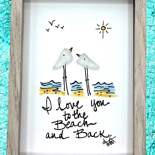I Love You To The Beach and Back - SLIM Sea Glass Art, 5x7 Whitewash Frame