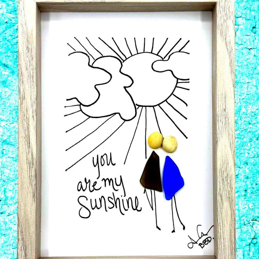 You Are My Sunshine - SLIM Sea Glass Art, 5x7 Whitewash Frame