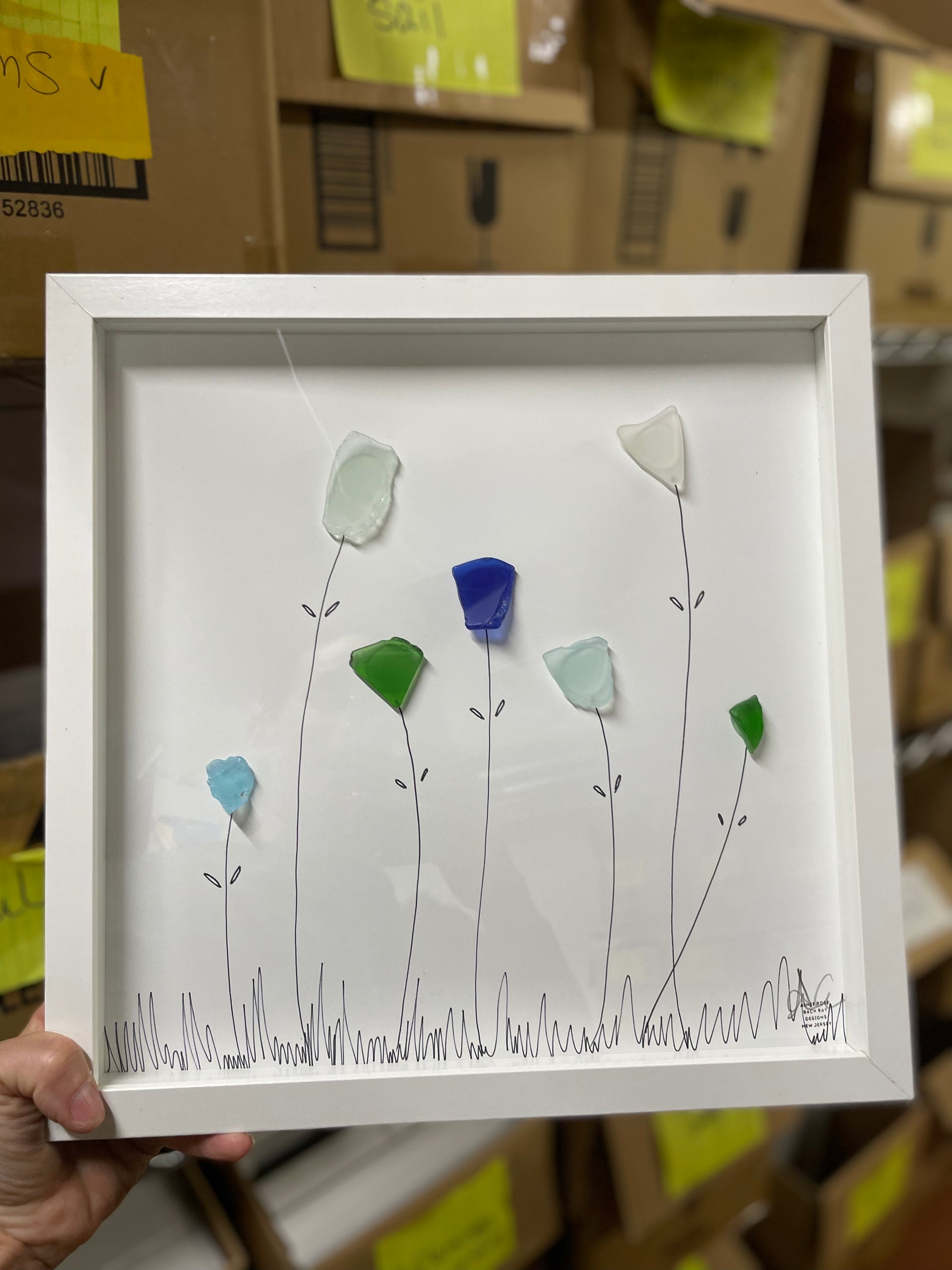 This 12x12 Wildflowers print features seven sea glass wildflowers, perfect for garden lovers or as a thoughtful memorial gift. Beautiful and meaningful.