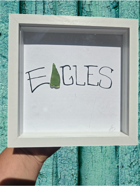 Celebrate your Eagles pride with this handmade sea glass art, perfect for any football fan looking to add a unique Philly touch to their space.