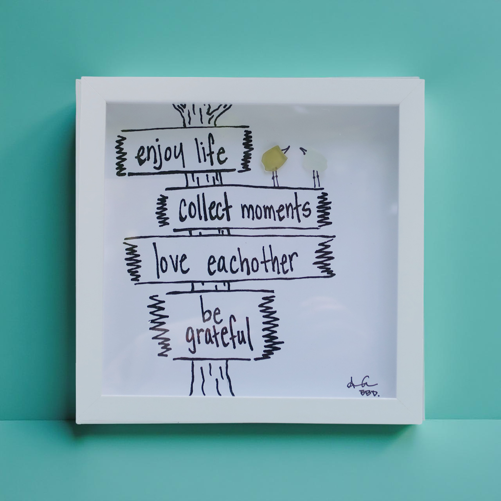 Celebrate life’s simple joys with this charming sign featuring sea glass birds. Perfect gift to inspire gratitude, love, and cherished moments.